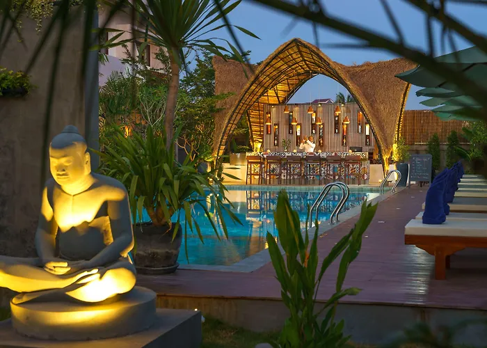 Dotato di una piscina, il Sabara Angkor Resort & Spa Siem Reap, a 5 stelle, si trova nel quartiere National Road 6 di Siem Reap, a una distanza di 3 km da Artisans D'Angkor. I viaggiatori d'affari apprezzeranno le diverse comodità, tra cui il Wi-Fi nelle aree comuni, e l'accesso a una scrivania e servizio fotocopie.